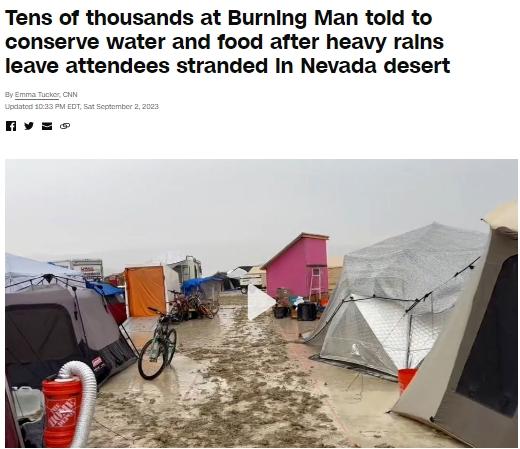 突降暴雨 數(shù)萬(wàn)“火人節(jié)”游客被困美國(guó)黑巖沙漠