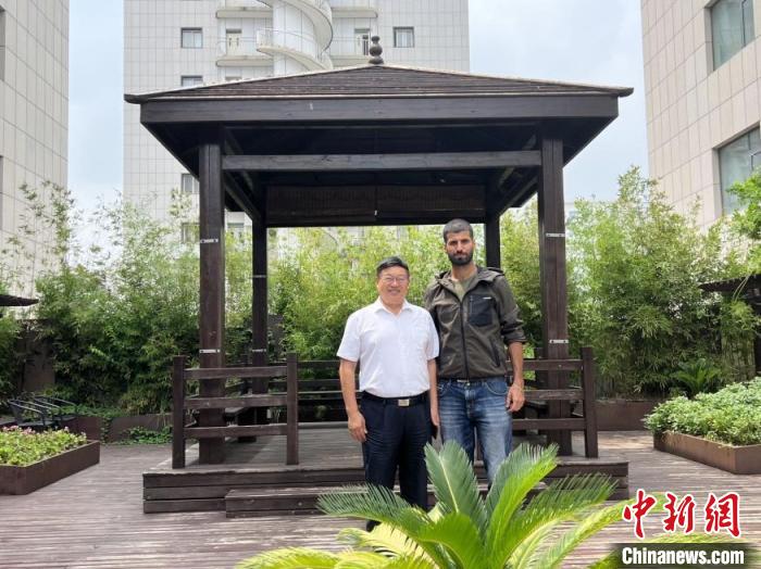 8月2日,在世界針灸學(xué)會(huì)聯(lián)合會(huì)(簡(jiǎn)稱世界針聯(lián))北京總部,海德·阿拉維(右)向世界針聯(lián)主席劉保延介紹工作進(jìn)展?!?天津大學(xué)供圖)