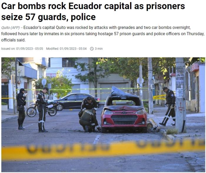 此外,當(dāng)?shù)貢r(shí)間8月30日晚至31日清晨,首都基多夜里發(fā)生兩起汽車(chē)炸彈攻擊事件,所幸未造成任何傷亡。