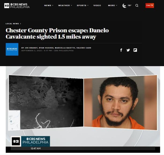 當?shù)貢r間9月1日,切斯特縣地方檢察官表示,卡瓦爾坎特被認為正試圖向南逃亡,但目前沒有證據(jù)表明他已經(jīng)離開了附近區(qū)域,或正受到他人幫助。