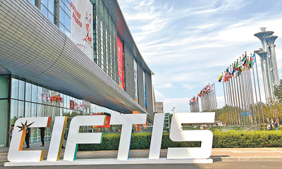圖為2023年服貿(mào)會(huì)國(guó)家會(huì)議中心展區(qū)外景。