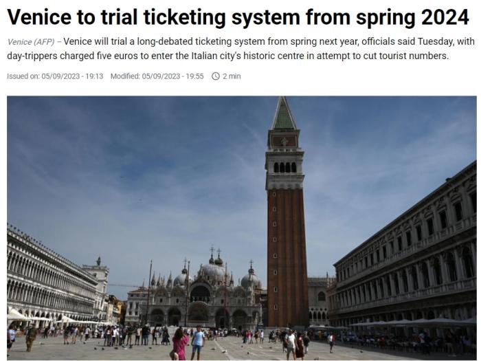 據(jù)報(bào)道,當(dāng)天,威尼斯市議會行政官員宣布同意購票入城制試運(yùn)行30天,且試運(yùn)行日期會分散在2024年春夏的法定節(jié)假日和周末。