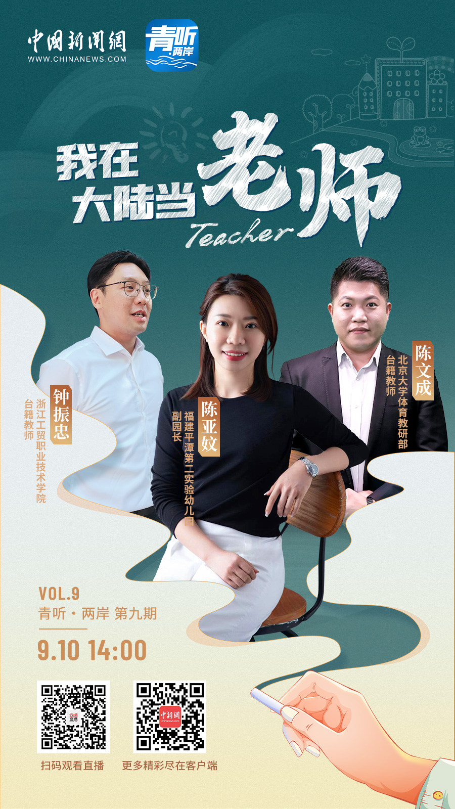 教師節(jié)這天,北京大學(xué)體育教研部教師陳文成、浙江工貿(mào)職業(yè)技術(shù)學(xué)院教師鐘振忠、福建平潭第二實(shí)驗(yàn)幼兒園副園長(zhǎng)陳亞妏,三位臺(tái)籍教師做客中國(guó)新聞網(wǎng)《青聽·兩岸》欄目,分享了他們“登陸”做老師的故事。
