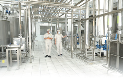 “生產(chǎn)設(shè)備來自中國和德國,當(dāng)時(shí)用了40多節(jié)車廂才把設(shè)備都運(yùn)到這里,組成自動化全封閉生產(chǎn)線?!睏罱苤钢喙S大門不到百米的鐵軌說,如今,公司年產(chǎn)駱駝奶粉480噸。