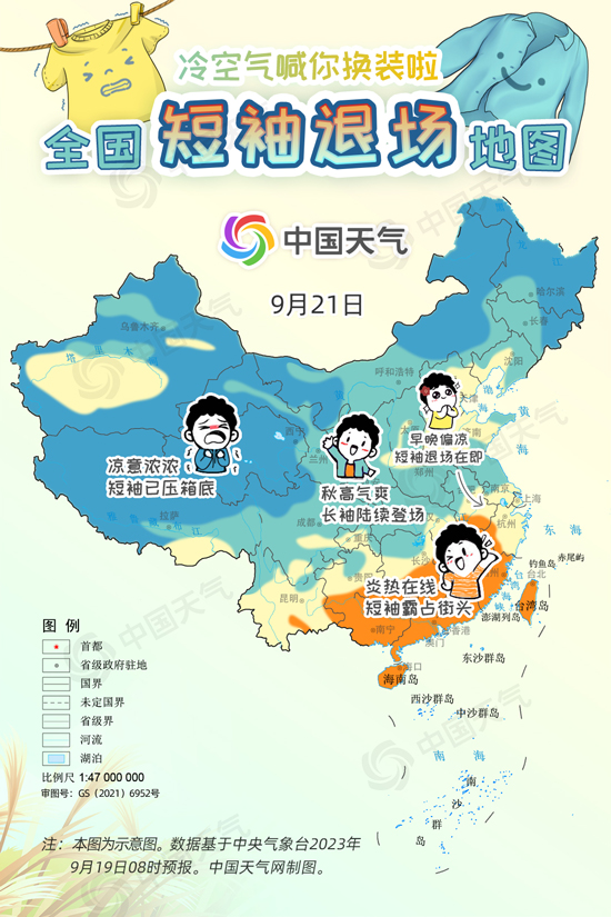 中國天氣網(wǎng)訊 進入9月中旬,冷空氣變“勞?!鳖l繁來襲,西北、東北大部都已邁入秋天門檻,但華北一帶今年秋天似乎來得有點兒晚,南方地區(qū)白天甚至熱到還要開空調(diào),不少網(wǎng)友喊話“秋高氣爽何時能來?”今起三天(9月19日至21日),受冷空氣和降雨共同影響,長江以北大部地區(qū)將陸續(xù)迎來降溫,開啟秋日初體驗。中國天氣網(wǎng)特別推出全國短袖退場地圖,看看哪里可以安排秋天的第一件長袖。