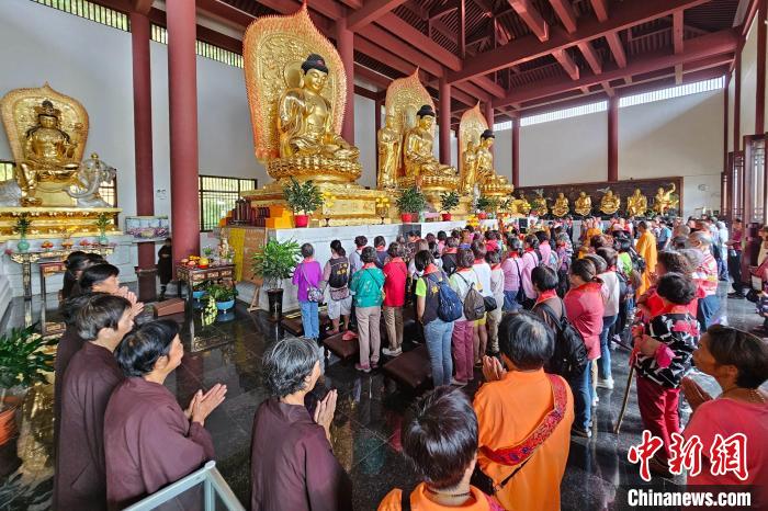 中新網(wǎng)福建南安9月18日電 (孫虹 林應(yīng)權(quán))臺灣新北市三峽區(qū)清水祖師信眾會一行105人,18日參訪福建南安英都西峰延壽院、翔云龍泉巖、省新部巖功德院等地,共話清水祖師信仰。