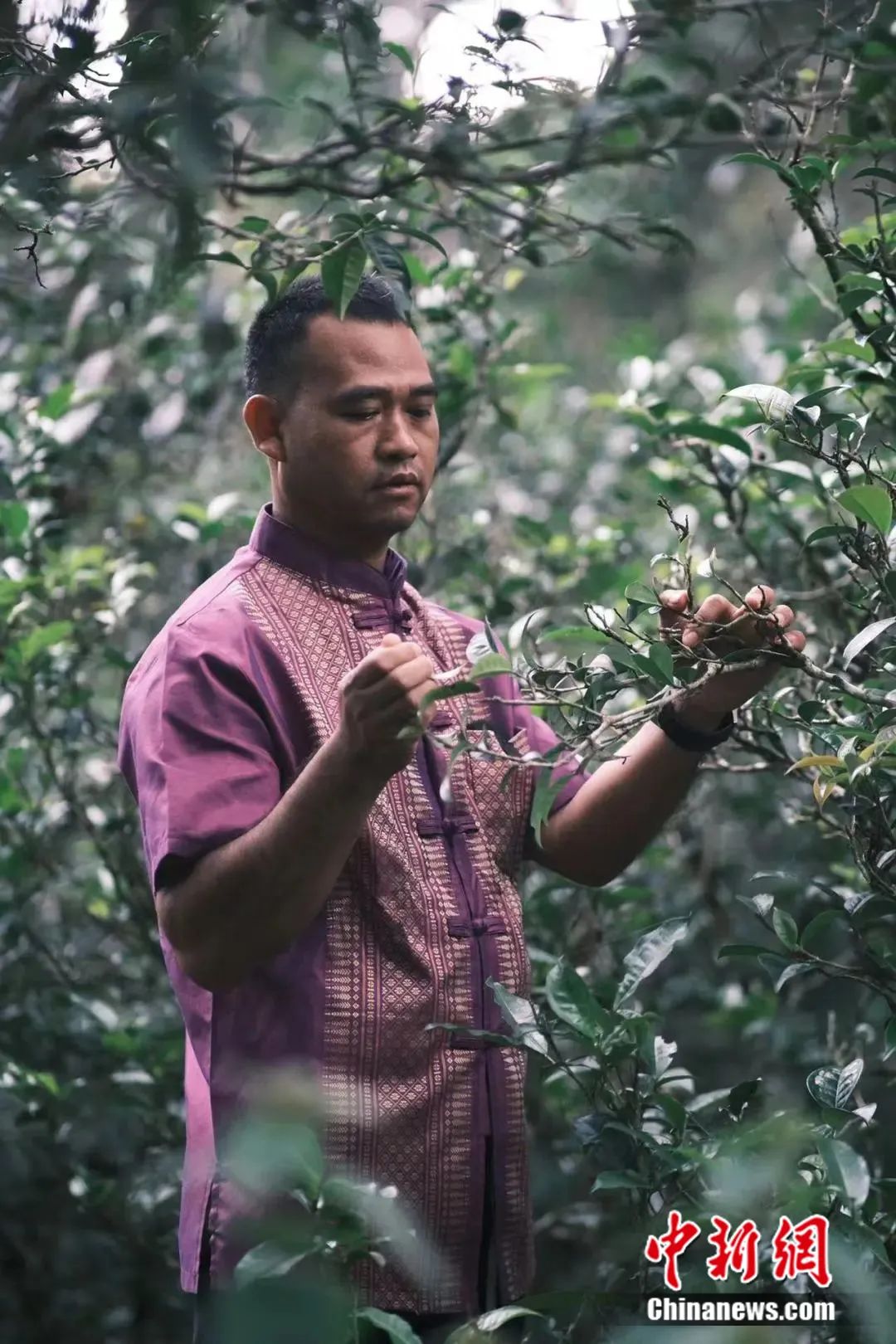 圖為景邁山茶農(nóng)正在采摘茶葉。中新社記者 劉冉陽 攝