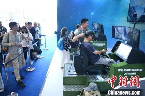 9月14日,與會者在展位體驗直升機模擬訓(xùn)練系統(tǒng)。當日,第六屆中國天津國際直升機博覽會在天津市空港經(jīng)濟區(qū)開幕。為期四天的博覽會吸引了來自全球20多個國家和地區(qū)的350余家直升機企業(yè)齊聚津門。 佟郁 攝