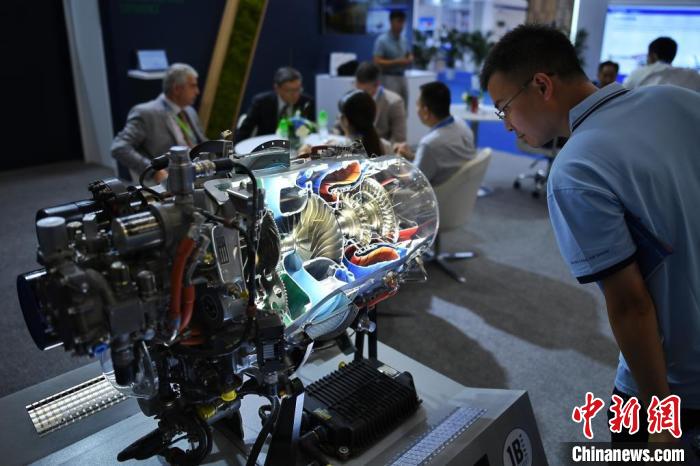 9月14日,與會者參觀直升機發(fā)動機結(jié)構(gòu)展示。當日,第六屆中國天津國際直升機博覽會在天津市空港經(jīng)濟區(qū)開幕。為期四天的博覽會吸引了來自全球20多個國家和地區(qū)的350余家直升機企業(yè)齊聚津門。 佟郁 攝