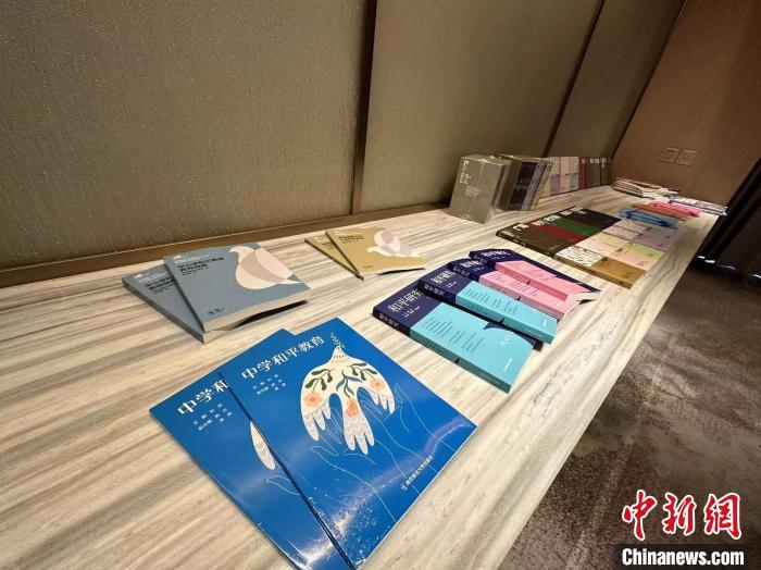 論壇上展示的南京中小學(xué)和平教育教材。 申冉 攝