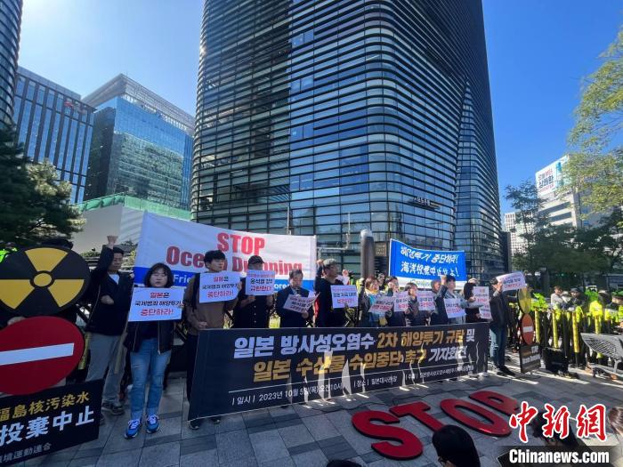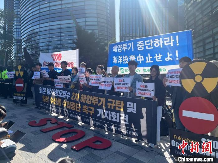 中新社首爾10月5日電 (劉旭 金琳)5日上午,韓國市民團(tuán)體在位于首爾鐘路區(qū)的日本駐韓國大使館前舉行記者招待會和集會,譴責(zé)日本福島第一核電站核污染水第二輪排海,并敦促韓國政府停止進(jìn)口日本水產(chǎn)品。