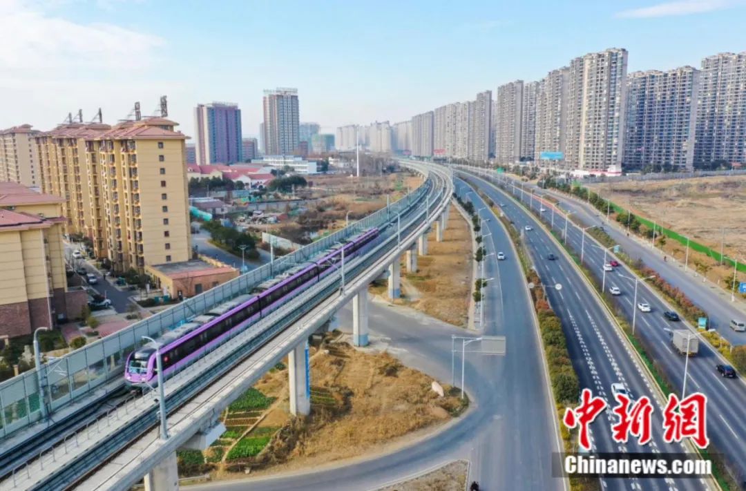 航拍運(yùn)行中的S6號(hào)線(寧句城際)。鐘學(xué)滿 攝