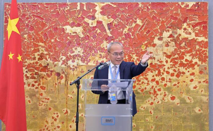 中國(guó)常駐維也納聯(lián)合國(guó)和其他國(guó)際組織代表李松大使在開(kāi)幕式上致辭。歐洲時(shí)報(bào)記者周修怡 攝