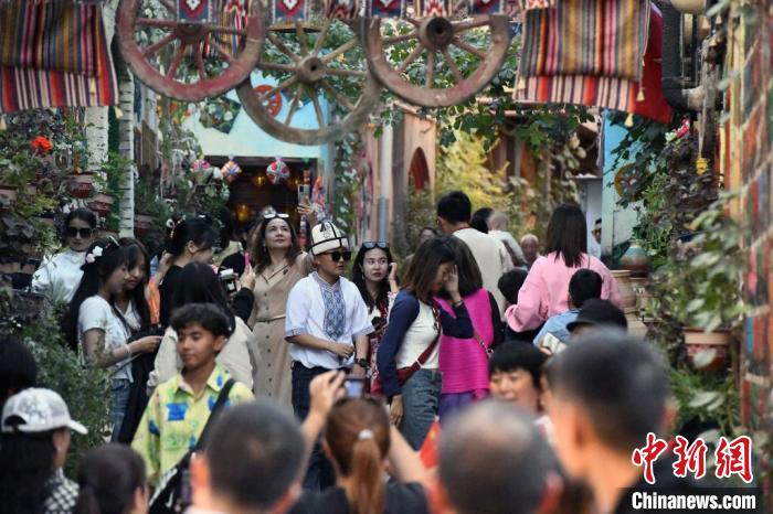 雙節(jié)期間,喀什作為新疆重要旅游目的地之一,迎來旅游高峰。10月1日,中新網(wǎng)記者來到喀什古城景區(qū),看到熙熙攘攘的游客們漫步在縱橫交錯(cuò)的巷道里,時(shí)不時(shí)駐足停留。10時(shí),在古城東門,觀看開城儀式的游客紛紛拿出手機(jī)打卡??κ补懦蔷皡^(qū)管委會(huì)對(duì)外宣傳科科長(zhǎng)阿地力江·阿不都卡德爾說,今年喀什旅游非?;馃?,很多游客慕名而來,品嘗當(dāng)?shù)孛朗?,感受民族風(fēng)情,帶動(dòng)了喀什古城景區(qū)的整體經(jīng)濟(jì)發(fā)展。