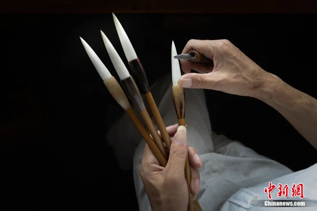 竹海里用之不竭的小竹竿,讓“造筆”這項工藝迅速發(fā)展起來。“湖州之筆,冠絕天下”,王獻之、顏真卿、文同等著名書法家,都對湖筆愛不釋手,說起來湖筆與中國書法史密不可分。