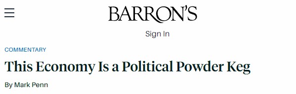 全球營銷服務(wù)公司Stagwell董事長兼首席執(zhí)行官馬克·潘(Mark Penn)6日在美國《巴倫周刊》撰文稱,美國政治舞臺(tái)正在變得丑陋。政府被指責(zé)成為家庭每天感受到的成本增加的罪魁禍?zhǔn)?。這就是為什么盡管數(shù)據(jù)“良好”,但根據(jù)哈佛大學(xué)CAPS/ Harris民調(diào)的最新結(jié)果,61%的被調(diào)查者認(rèn)為美國經(jīng)濟(jì)正走在錯(cuò)誤的軌道上。