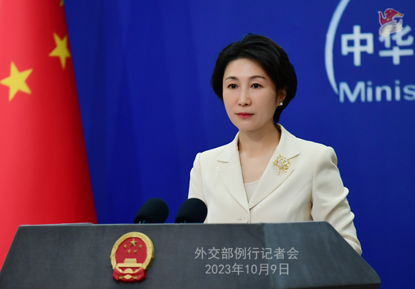 中新網(wǎng)北京10月9日電 (記者 李京澤)中國外交部發(fā)言人毛寧9日主持例行記者會。有記者就巴以沖突和美國向以色列運送軍事設(shè)備提問。