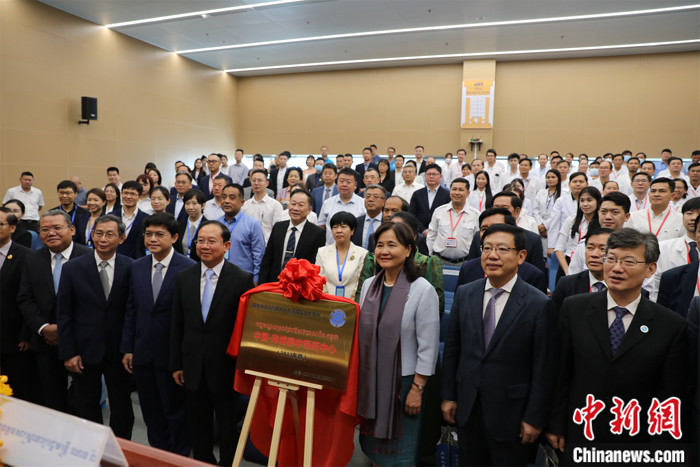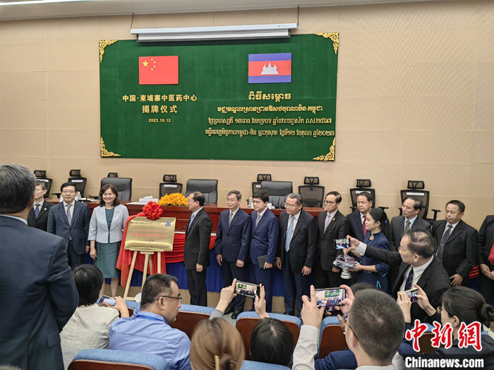 當(dāng)?shù)貢r間10月12日,“中國—柬埔寨中醫(yī)藥中心”揭牌儀式在柬埔寨金邊考斯瑪中柬友誼醫(yī)院舉行。 中新社記者 楊強(qiáng) 攝