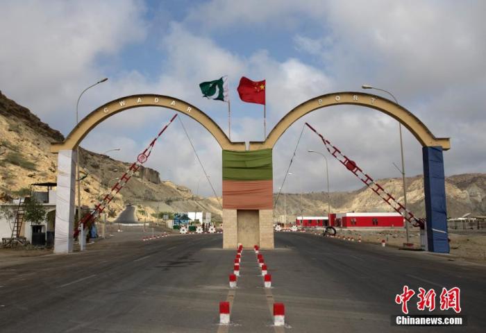資料圖:瓜達爾港出入口的拱門。瓜達爾港是阿拉伯海沿岸的一座天然不凍良港,也是中巴經(jīng)濟走廊的南端起點。中新社記者 劉關(guān)關(guān) 攝
