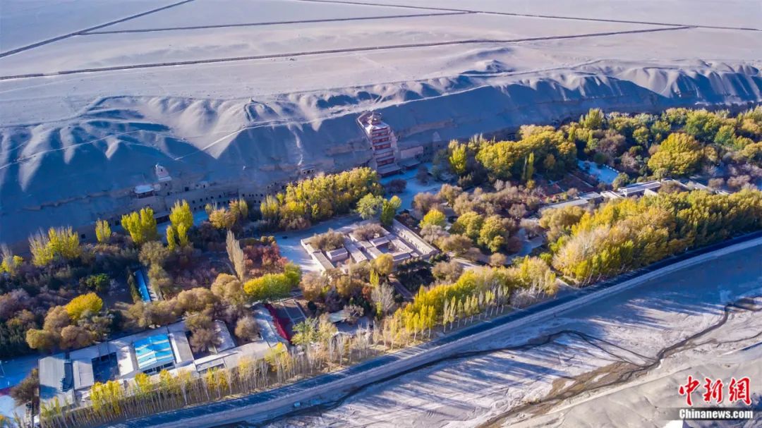 航拍深秋季節(jié)的世界文化遺產(chǎn)莫高窟。王斌銀 攝