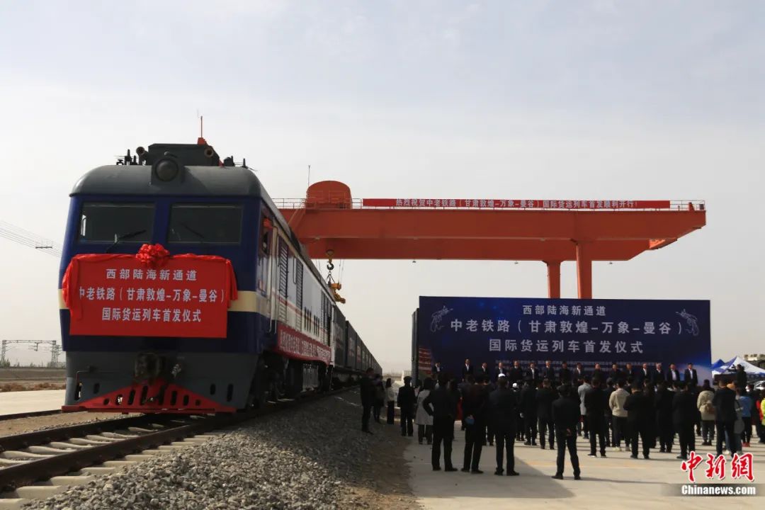首趟西部陸海新通道中老鐵路(甘肅敦煌-萬象-曼谷)國際貨運(yùn)列車發(fā)運(yùn)。張曉亮 攝