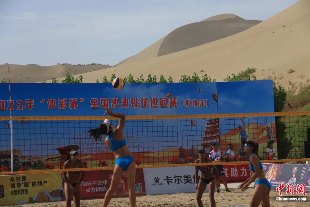 2023年“體彩杯”全國沙灘排球巡回賽(敦煌站),在鳴沙山下開賽。張曉亮 攝