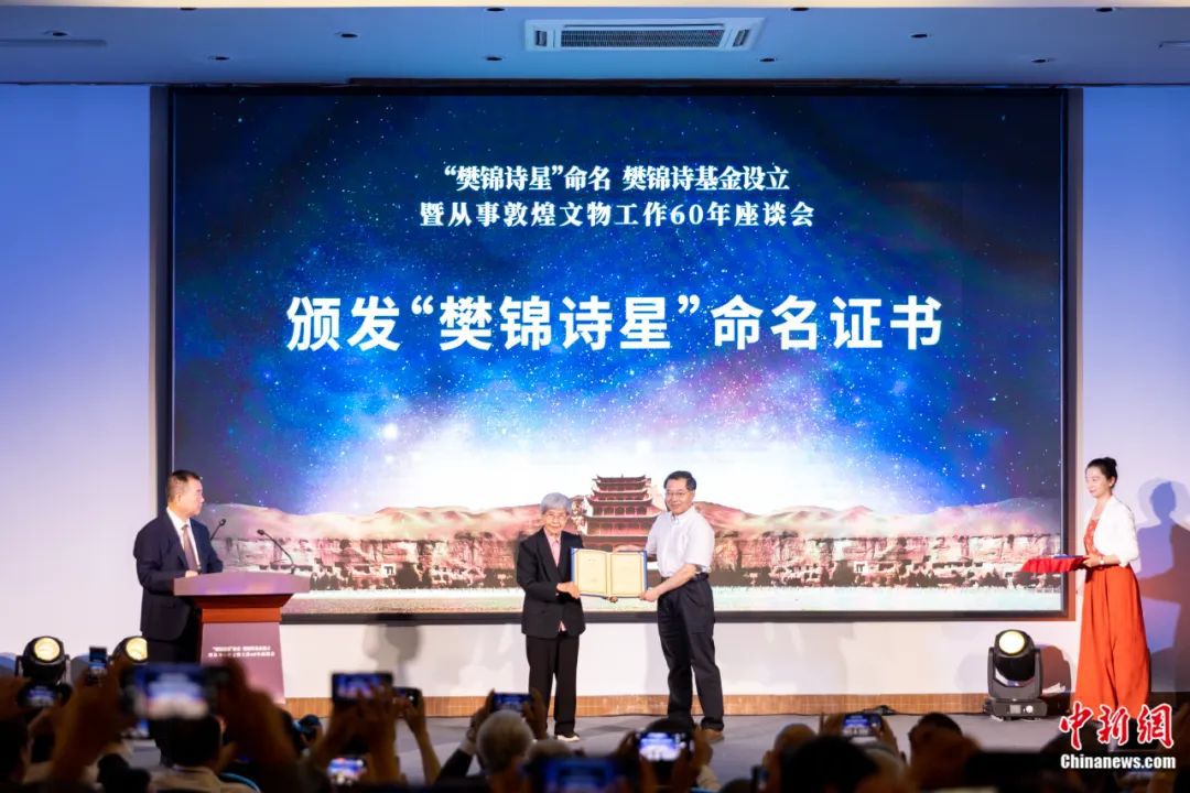 2023年7月10日,“樊錦詩星”命名、樊錦詩基金設(shè)立暨樊錦詩從事敦煌文物工作60年座談會(huì)在甘肅敦煌舉行。敦煌研究院供圖