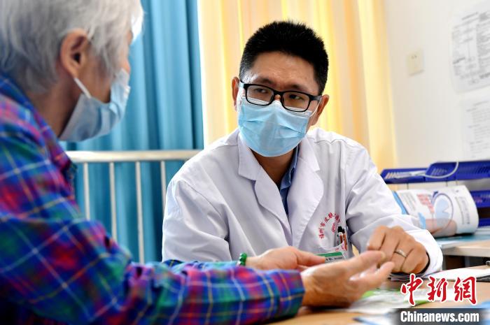 10月9日,現(xiàn)就職于福州市皮膚病防治院的臺(tái)籍醫(yī)生陳柏叡在與一名患者交流?!≈行律缬浾?呂明 攝