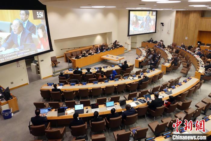 張軍還代表28個國家作共同發(fā)言,揭批美西方濫施單邊強制措施,強調(diào)單邊強制措施違反《聯(lián)合國憲章》宗旨和原則以及國際法,有悖于多邊主義和國際關系基本準則,對受制裁國家及其人民造成破壞性甚至致命后果,嚴重侵犯并剝奪了包括健康權和生命權在內(nèi)的各項人權,呼吁立即徹底取消。