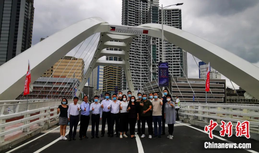 2022年4月6日,中國駐菲使館部分館員和中國駐菲企業(yè)、機構工作人員,登上新落成的中國援建菲律賓馬尼拉B-I大橋合影留念。中國駐菲律賓大使館 供圖
