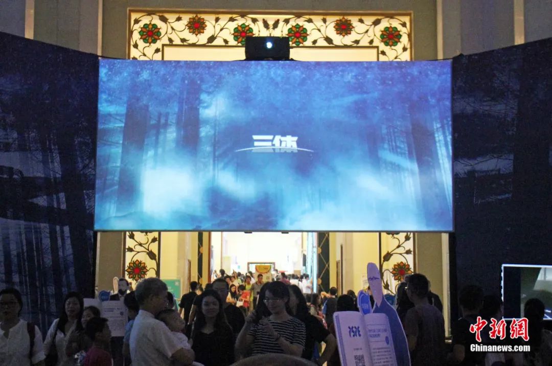 2016年9月17日,上海展覽中心的科普產(chǎn)品博覽會(huì)上,劉慈欣科幻小說(shuō)《三體》的主題展館受到科幻迷關(guān)注。陳玉宇 攝