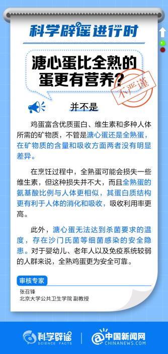 中新網(wǎng)10月20日電 溏心蛋和全熟蛋在礦物質(zhì)的含量和吸收方面沒有明顯差異。在烹飪過程中,全熟蛋可能會損失一些維生素,但這種損失并不大,而且全熟蛋的氨基酸比例與人體更相似,其蛋白質(zhì)結(jié)構(gòu)更有利于人體的消化和吸收。此外,溏心蛋無法達到殺菌要求的溫度,存在沙門氏菌等細菌感染的安全隱患。(來源:@科學辟謠 @中國新聞網(wǎng) )