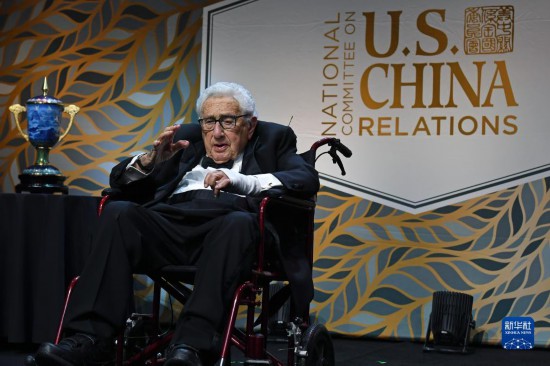 10月24日,美國前國務(wù)卿基辛格在紐約舉行的美中關(guān)系全國委員會年度頒獎晚宴上講話。新華社記者李睿攝