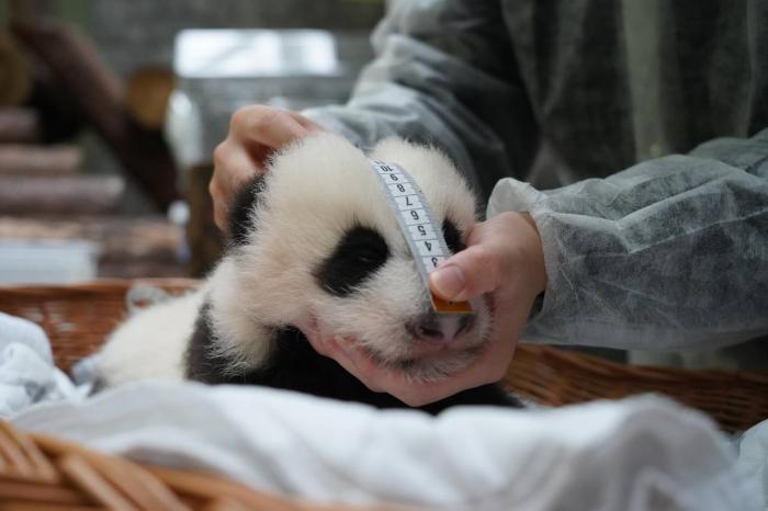 園方表示,熊貓寶寶的體重已經達到3428克,與之前的體檢結果相比,身長增加了7厘米,尾巴的增長速度有所放緩,長度依然保持在6.8厘米。