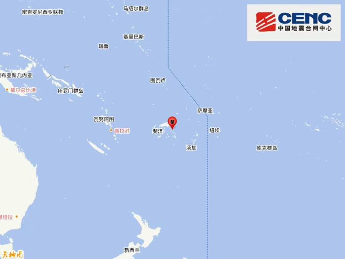 斐濟(jì)群島發(fā)生6.5級地震,震源深度550千米