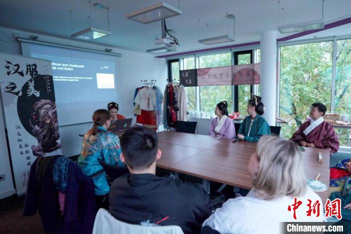 中新網(wǎng)柏林10月28日電 由漢景帝陽陵博物院主辦的“漢服之美·漢文化藝術(shù)體驗(yàn)課程”活動(dòng)近日在柏林的漢文化藝術(shù)交流中心講堂(體驗(yàn)館)舉辦,數(shù)十名來自德國柏林的年輕漢文化愛好者與中國講師共同參與了活動(dòng)。