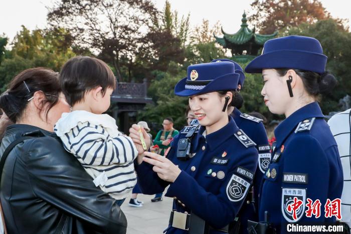 西湖女子巡邏隊為瘦西湖的游客小朋友提供服務。主辦方供圖