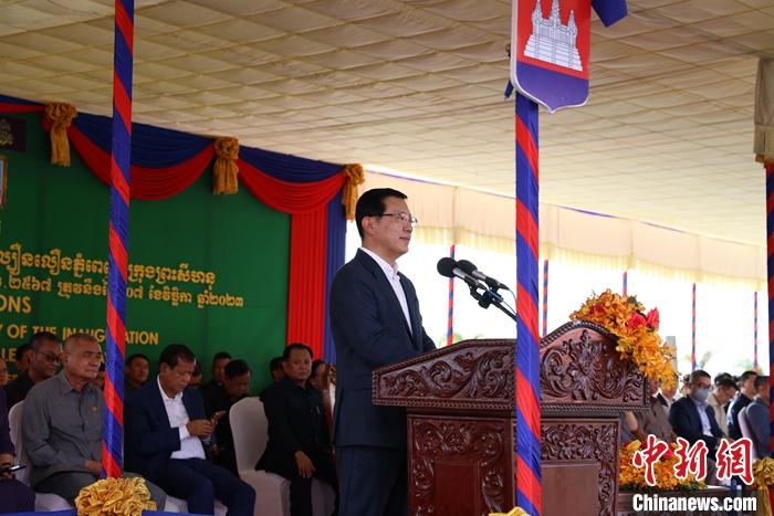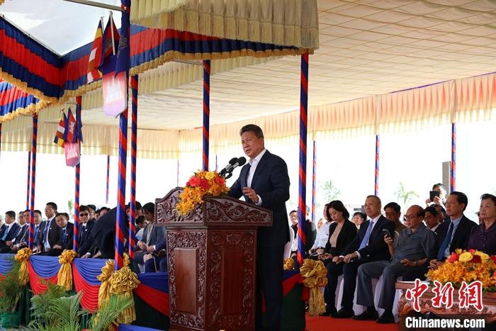 中國(guó)駐柬埔寨大使王文天、柬公共工程與運(yùn)輸部大臣賓波尼及超2000名企業(yè)代表和當(dāng)?shù)孛癖妳⒓討c典活動(dòng)。