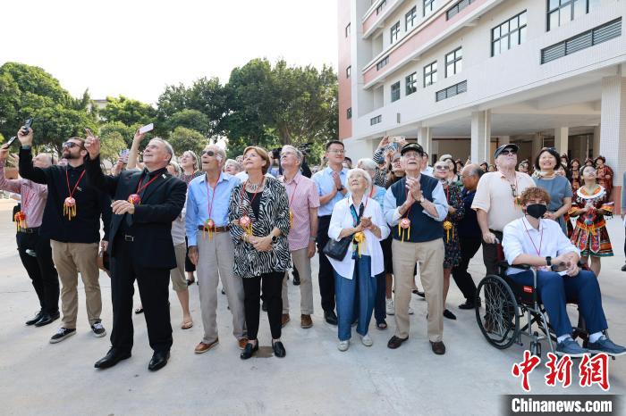 11月5日,美中航空遺產(chǎn)基金會主席杰弗里·格林和飛虎隊老兵哈里·莫耶、梅爾文·麥克馬倫攜飛虎隊后代,走進“飛虎隊友誼學?!薄獜V西柳州市壺西實驗中學。
