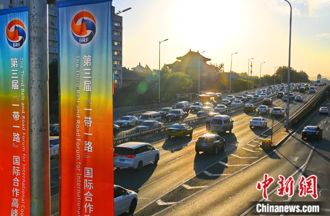2023年10月,北京市街頭布置的第三屆“一帶一路”國(guó)際合作高峰論壇元素裝置。胡慶明 攝