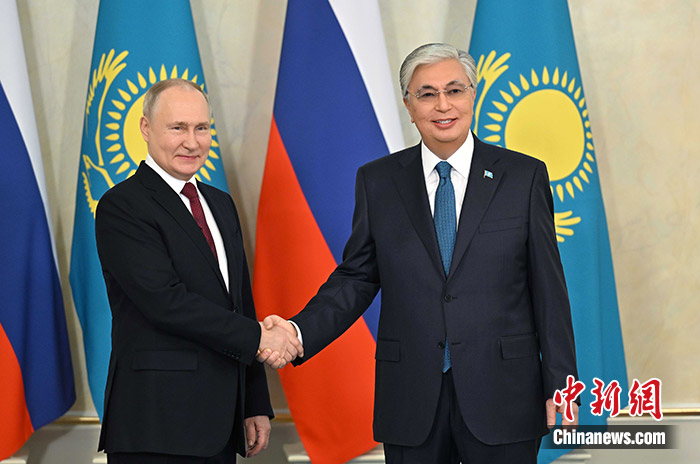 當?shù)貢r間11月9日,哈薩克斯坦阿斯塔納,哈總統(tǒng)托卡耶夫與到訪的俄羅斯總統(tǒng)普京舉行會談。 中新社發(fā) 哈總統(tǒng)府官網(wǎng)供圖