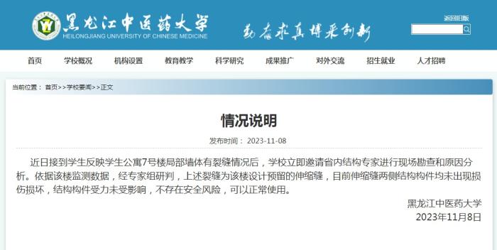 黑龍江一大學(xué)學(xué)生公寓墻體開裂?官方:不存在安全風(fēng)險