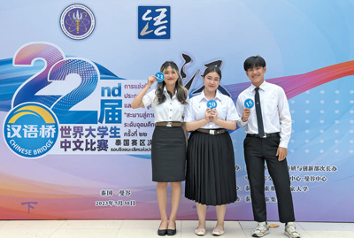 語(yǔ)言是了解一個(gè)國(guó)家最好的鑰匙。當(dāng)前,越來(lái)越多的外國(guó)人通過(guò)學(xué)習(xí)中文和參加“漢語(yǔ)橋”交流項(xiàng)目,了解到豐富多彩、立體全面的中國(guó)。圖為今年7月,部分參加第二十二屆“漢語(yǔ)橋”世界大學(xué)生中文比賽泰國(guó)賽區(qū)決賽的比賽選手在現(xiàn)場(chǎng)合影留念。