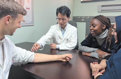 多年來(lái),以中醫(yī)院、中醫(yī)診所、研究機(jī)構(gòu)等為載體,中醫(yī)藥學(xué)走出國(guó)門(mén)、走向世界。圖為南非約翰內(nèi)斯堡大學(xué)針灸專(zhuān)業(yè)學(xué)生在非洲中醫(yī)及針灸中心參加中醫(yī)臨床實(shí)踐課程。