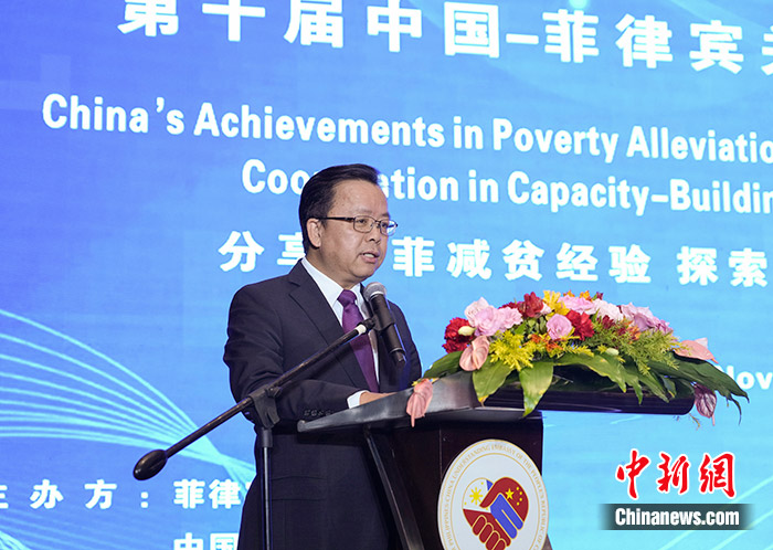 當(dāng)天,由中國(guó)駐菲律賓使館和菲律賓中國(guó)了解協(xié)會(huì)聯(lián)合舉辦的第十屆“中菲關(guān)系馬尼拉論壇”在馬尼拉舉行,主題為“分享中菲減貧經(jīng)驗(yàn),探索兩國(guó)減貧合作路徑”。