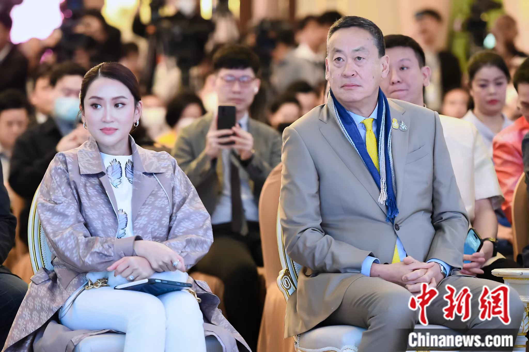 泰國(guó)總理賽塔(右)和泰國(guó)國(guó)家軟實(shí)力戰(zhàn)略委員會(huì)副主席貝東丹(左)等出席啟動(dòng)儀式。趙婧楠攝