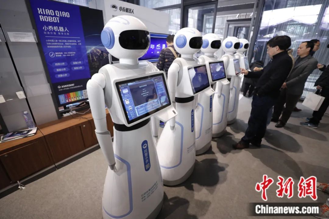 第四屆世界互聯(lián)網(wǎng)大會“互聯(lián)網(wǎng)之光”博覽會上,參觀者體驗(yàn)人工智能機(jī)器人。杜洋 攝