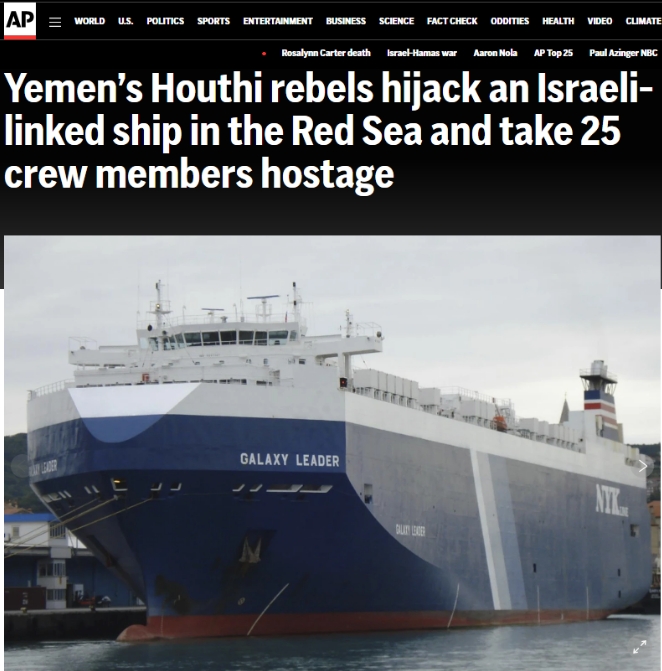 對(duì)此,以色列軍方表示,胡塞武裝扣押的并不是以色列船只,船上也沒(méi)有以色列人,而是一艘由英國(guó)所有、日本經(jīng)營(yíng)的貨船,并譴責(zé)此事為“恐怖主義行為”。