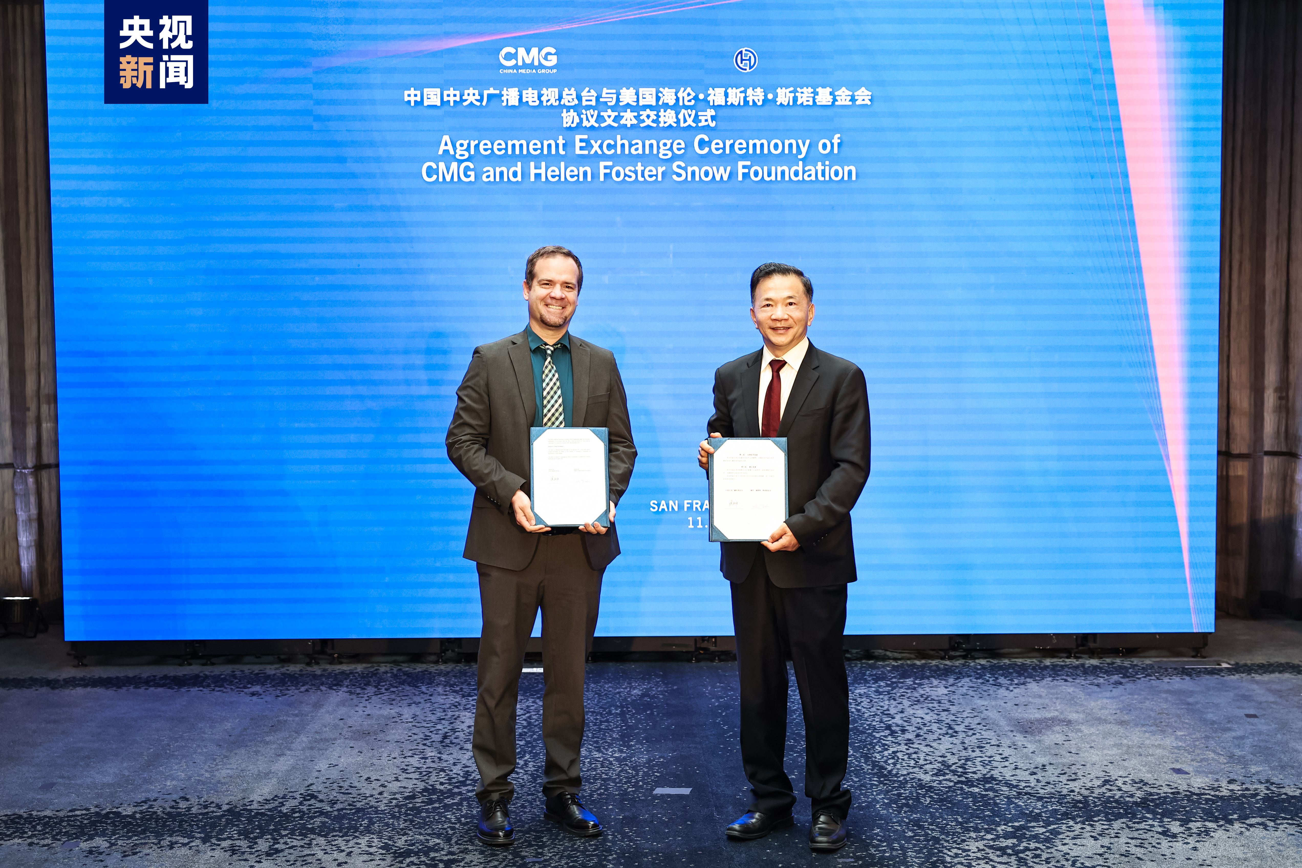 活動上,中央廣播電視總臺分別與美中青少年學生交流協(xié)會、美中航空遺產(chǎn)基金會、海倫·福斯特·斯諾基金會交換合作備忘錄,在文化、新聞、教育等多個領(lǐng)域展開合作,共同為推動中美人文交流注入新動能。