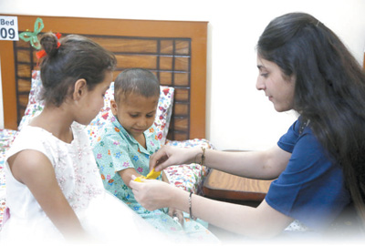 考慮到兒童病患的特殊性,“小家”一直將孩子們的心理疏導(dǎo)作為志愿工作的重點(diǎn)?!昂⒆觽兊男睦頎顟B(tài)很重要?!薄靶〖摇卑头截?fù)責(zé)人蘇比婭·阿德南說。阿德南有30多年的兒童公益服務(wù)經(jīng)歷,在她和巴中兩國(guó)同事的引導(dǎo)下,孩子們相互鼓勵(lì)支持,在閑暇時(shí)制作各種手工藝品布置“小家”。